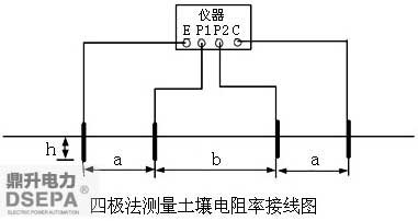 使用DIDW-5A地网接地电阻测试仪测量土壤电阻率。下面以四极法为例来说明。DIDW-5A大型地网接地电阻测试仪测量土壤电阻率的接线如下图所示。