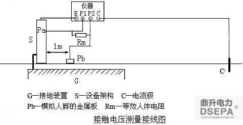 接触电压的测量接线图如下图所示。可按下述步骤进行测试。