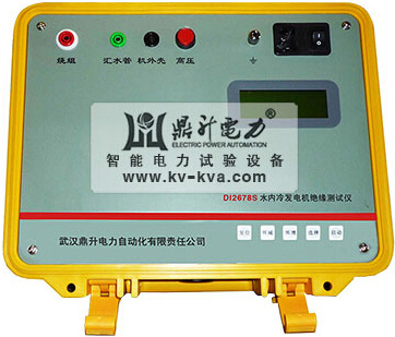 检查电气设备的绝缘性能,测量绝缘电阻是最简单快速的基本方法,鼎升电力调查了国内外多种水内冷发电机绝缘电阻测试仪,设计了DI2678S水内冷发电机绝缘测试仪。水内冷发电机绝缘测试仪测量原理新颖,操作简便,精度高,水内冷发电机绝缘测试仪采用全集成电路,耐振动,工作稳定性好,输出短路电流大,在现场环境下抗干扰能力强,能满足目前发电厂的测试要求。水内冷发电机绝缘测试仪具有计时,报警和数据存贮等功能,可方便地测量绝缘电阻,吸收比,极化指数等参数。