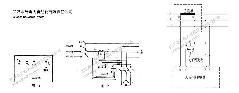 由于电流互感器安装在中相(绿相),则电压接线柱左边那个应接绿色相电压。然后以绿色相为UA,用相序表测定黄、绿、红三相电压的相序,结果是绿一黄一红为正相序。图2中括号所标的UA、UB、UC即为相序表测定的结果.则在中间的电压接线柱应接黄相电压.右边的电压接线应接红色相电压。电压线接好后,再看电流线怎样连接。由于电流互感器的极性标注法是减极性的,即一次电流从L1端流人互感器,则互感器的二次电流从K1端流出,所以就应把电流互感器的K1端与功率因数表的标有*号的电流接线往相连,K2端与另一电流接线柱相连。这样就相当于负荷电流流入了标有*号的电流接线柱(如图2中箭头方向所示)。虽然功率因数表装在电容柜上,但它反映的是低压总母线上的功率因数,故电流互感器应安装在总母线上。